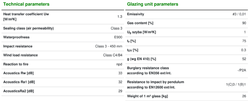 P2 - Energy-Saving Double Glazing. An excellent all-around choice, this energy-saving double-glazed unit features a toughened outer pane for enhanced durability against the elements. It provides fantastic thermal performance, helping to keep your home warm and your energy bills down. U-value: 1.3 W/m²K